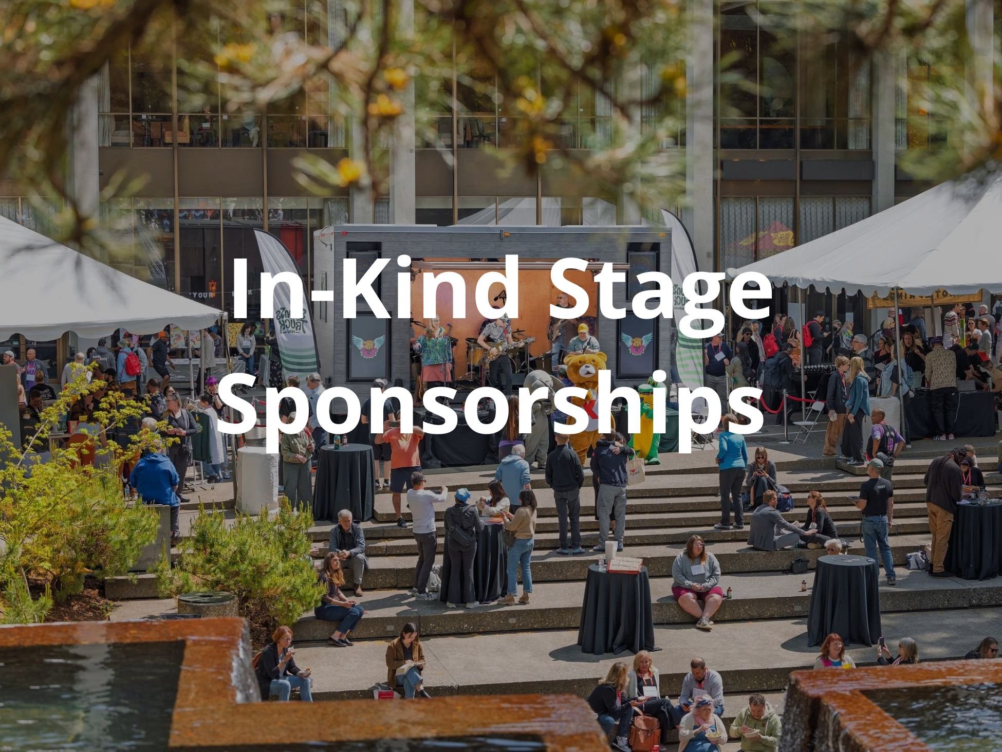 For large-scale public events, we provide the stage as an in-kind sponsorship in exchange for visibility and shared storytelling about our mission.